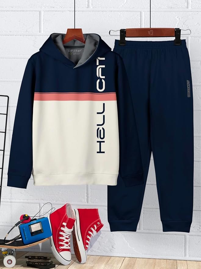 HELLCAT Printed Cotton Blend Full sleeve Hoodie T-shirt Jogger Trackpant Clothing Set for Boys