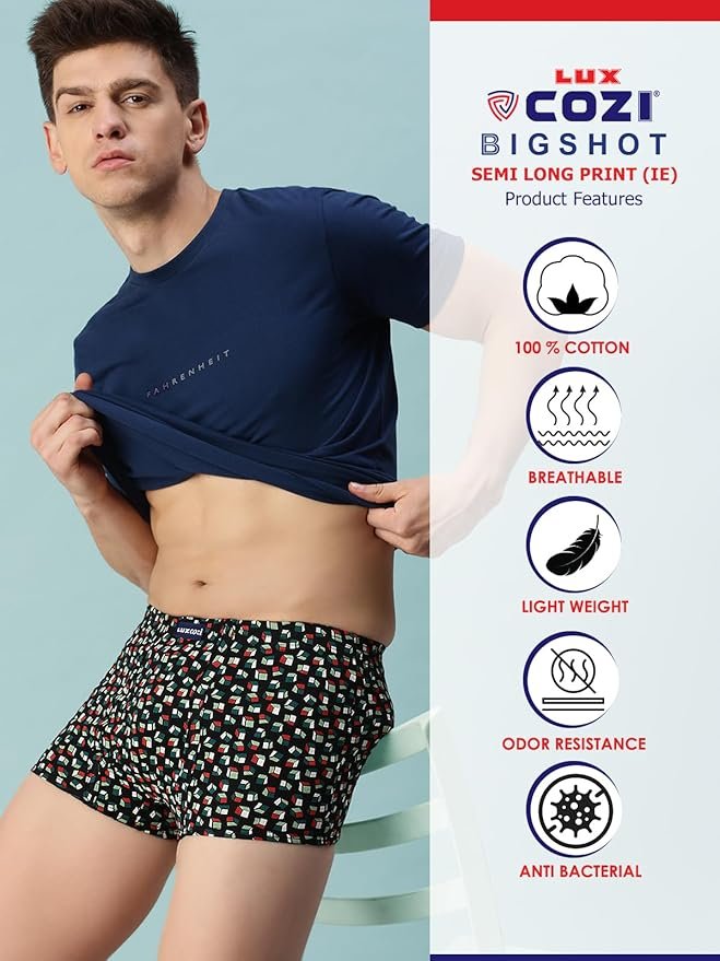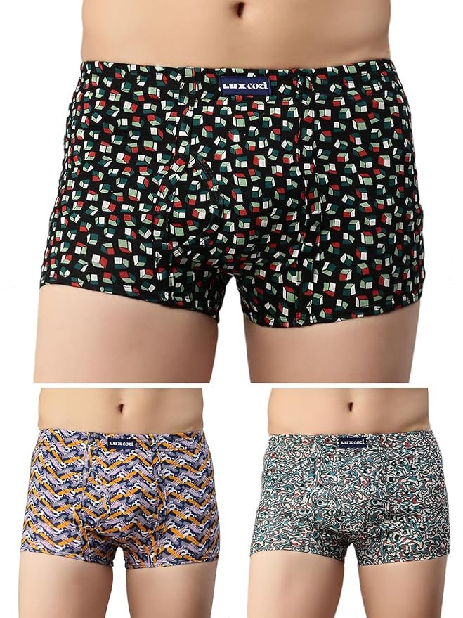 Lux Cozi Mens 100% Cotton Printed Mini Trunk | Printed Mini Trunk for Men | Color and Print May Vary | Mini Trunk for Men Pack of 3